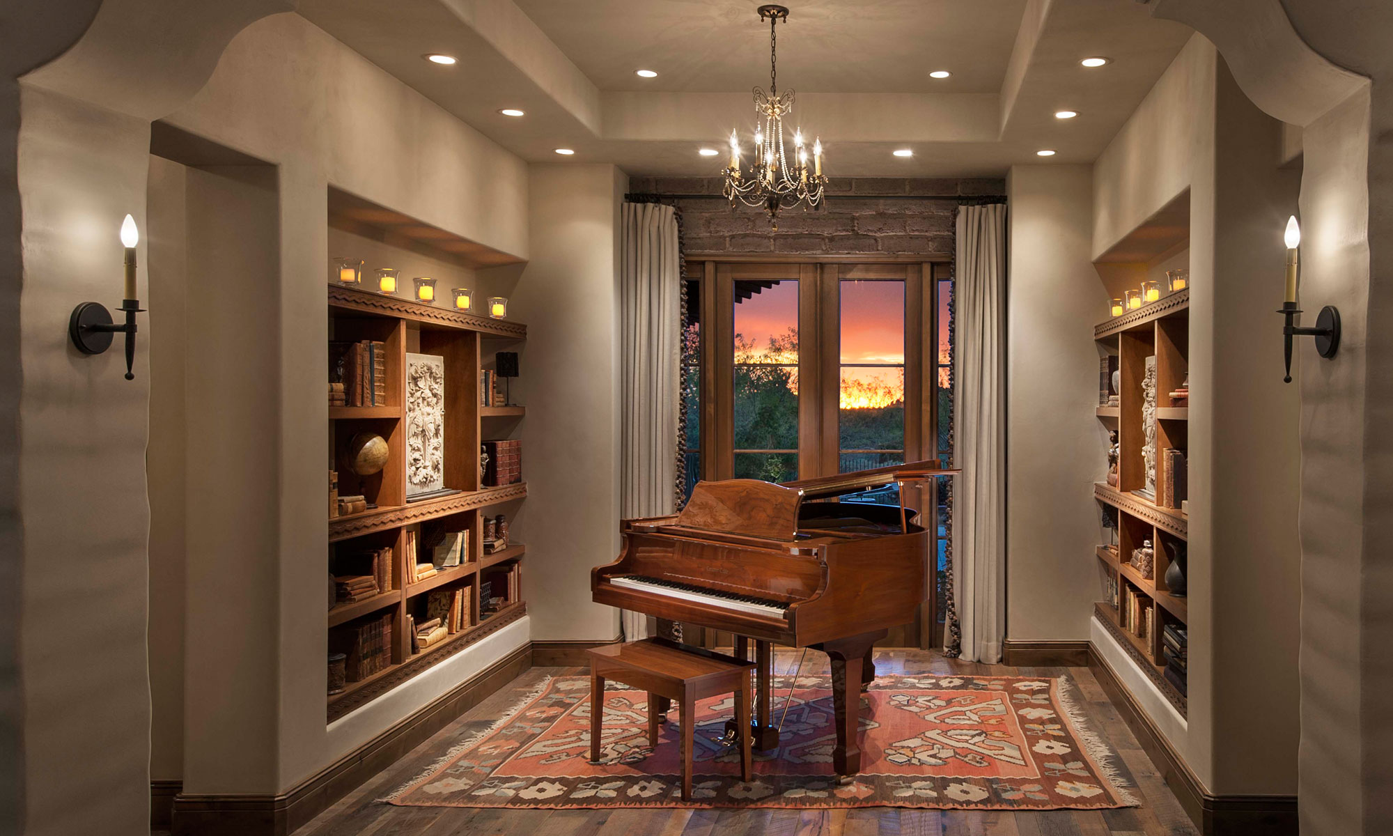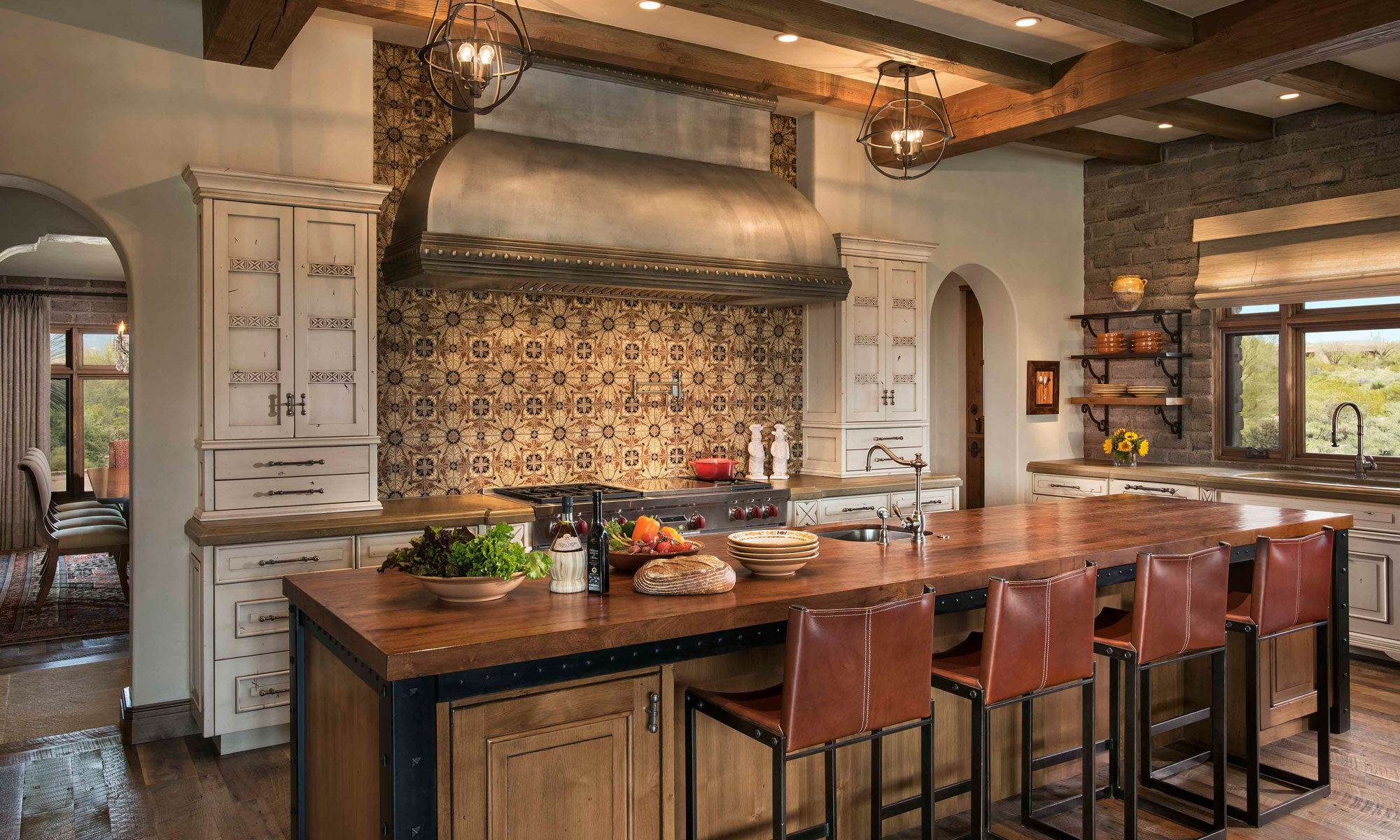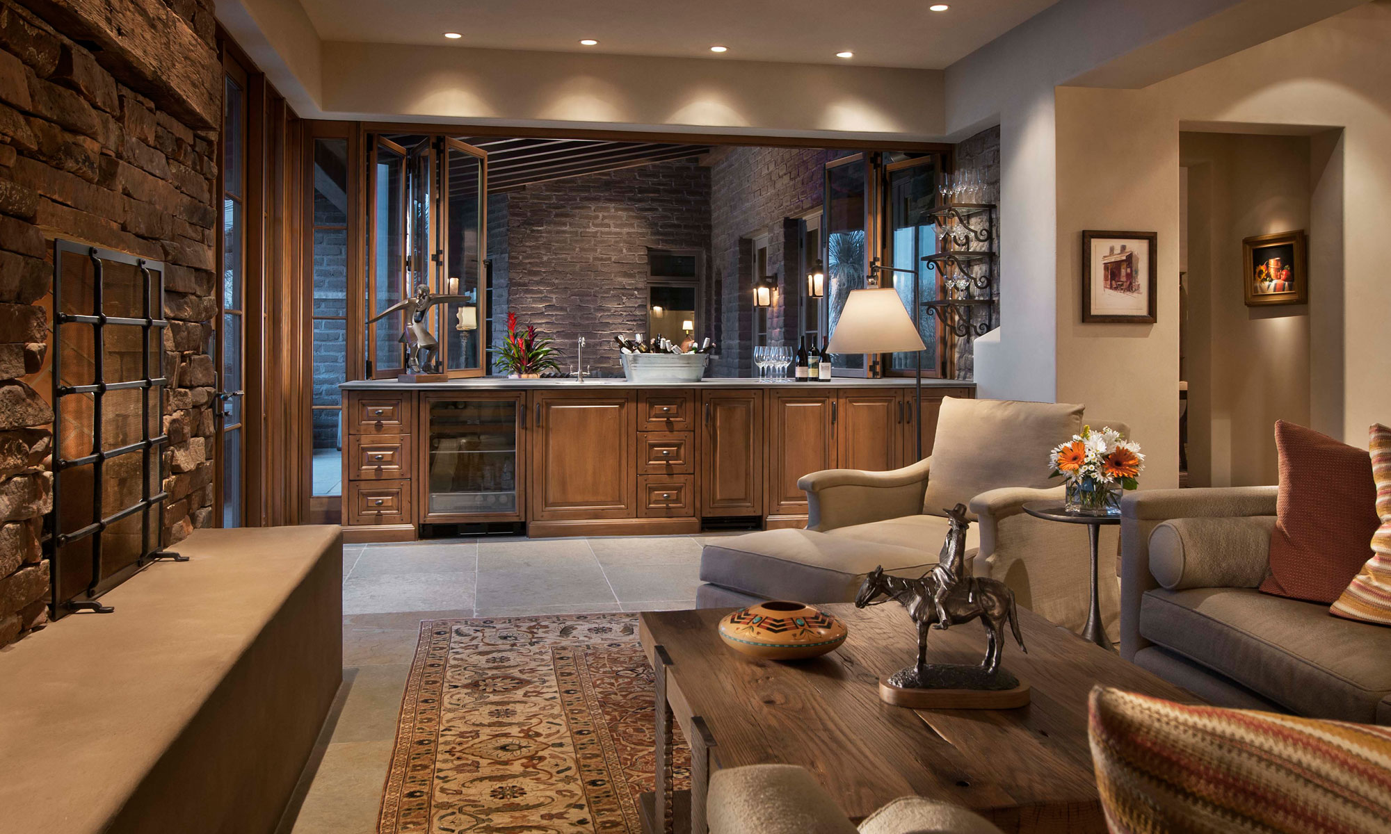 While modern construction materials have given the sun dried earthen element a run for its money, its popularity here continues to flourish, as seen in this sophisticated home in Whisper Rock, Scottsdale. Adobe construction is classic in the Southwest, and adds design character to a desert dwelling. This Arizona Luxury interior design showcases reclaimed wood floors and plaster walls complete the look.
