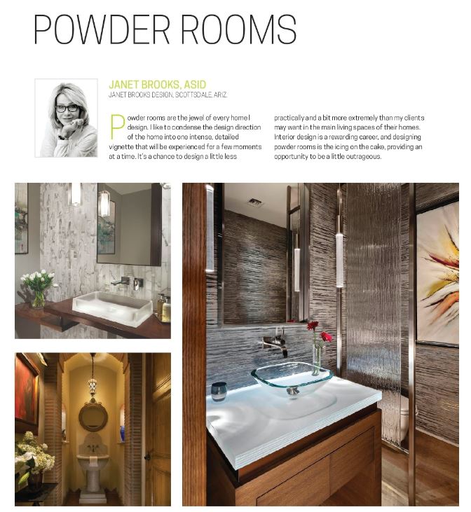 Custom Builder Magazine: For Janet Brooks designing powder rooms is the icing on the cake, providing an opportunity to be a little outrageous.