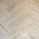 Linear veins in vein cut travertine give the opportunity to create interesting patterns, such as this herringbone pattern.