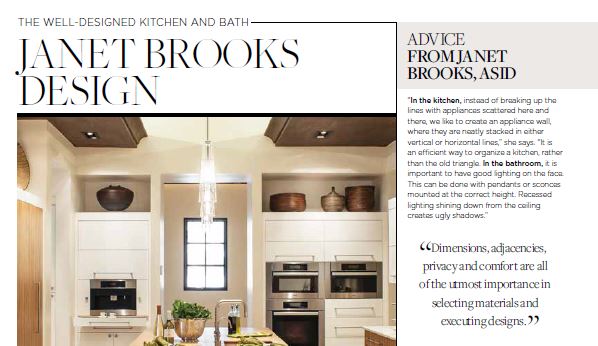Brooks goes on to identify a partnership between the design professional and homeowner as a key to success, saying, “Your designer should help you clarify exactly what ingredients are important in your kitchen and bathroom, from appliances and plumbing fixtures to types of storage.”