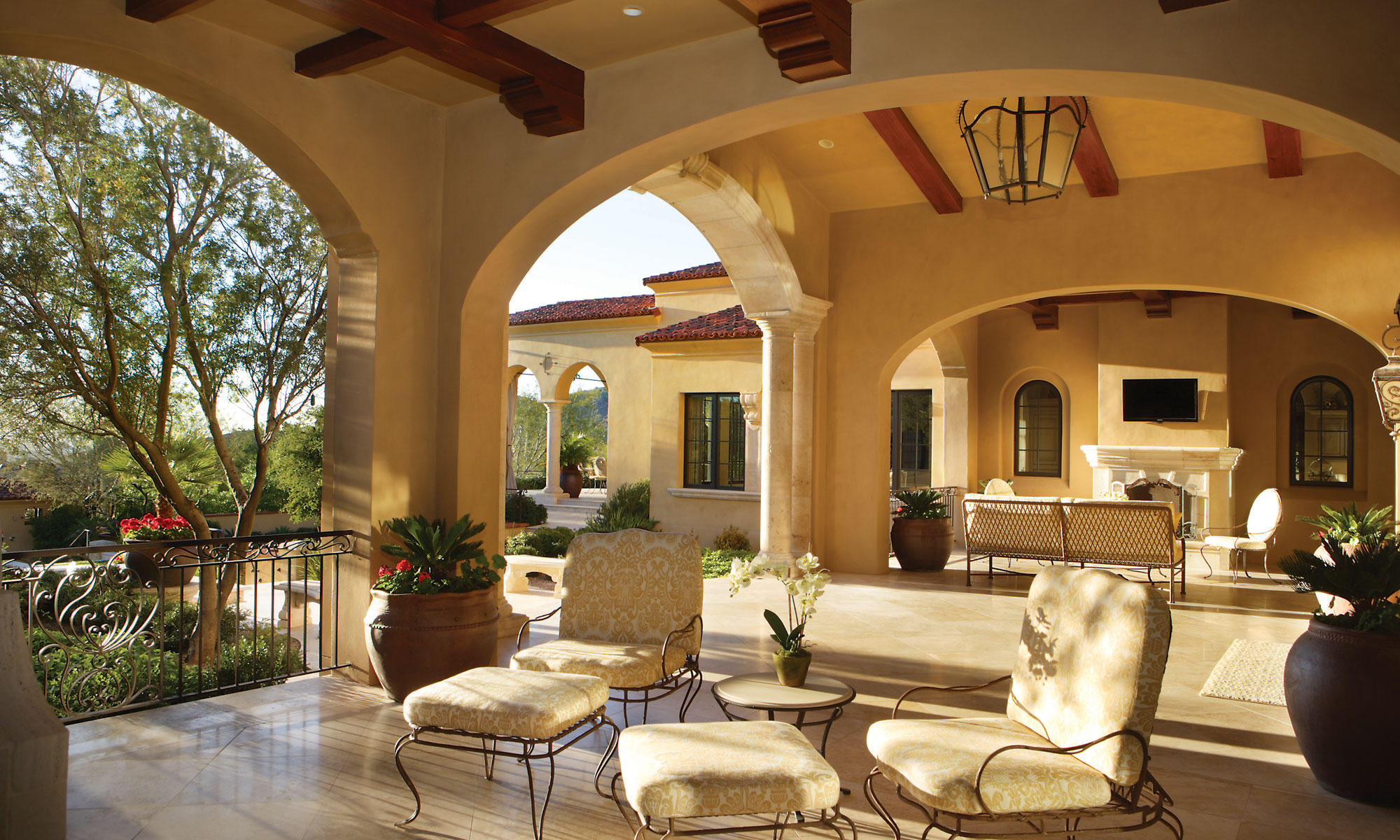 Our Mediterranean Interior Design portfolio shot is showcased in Silverleaf community. Located in North Scottsdale, this design communities covenants and restrictions require a certain Mediterranean style of architecture. Including clay tile roofs, arched windows and doorways, this Mediterranean Interior Design often features carved limestone architectural details, hand wrought iron railings and window details. Courtyards are also a prominent feature in many of the homes, which emulate the style of life to be found in Spain, Italy and other Mediterranean environments.