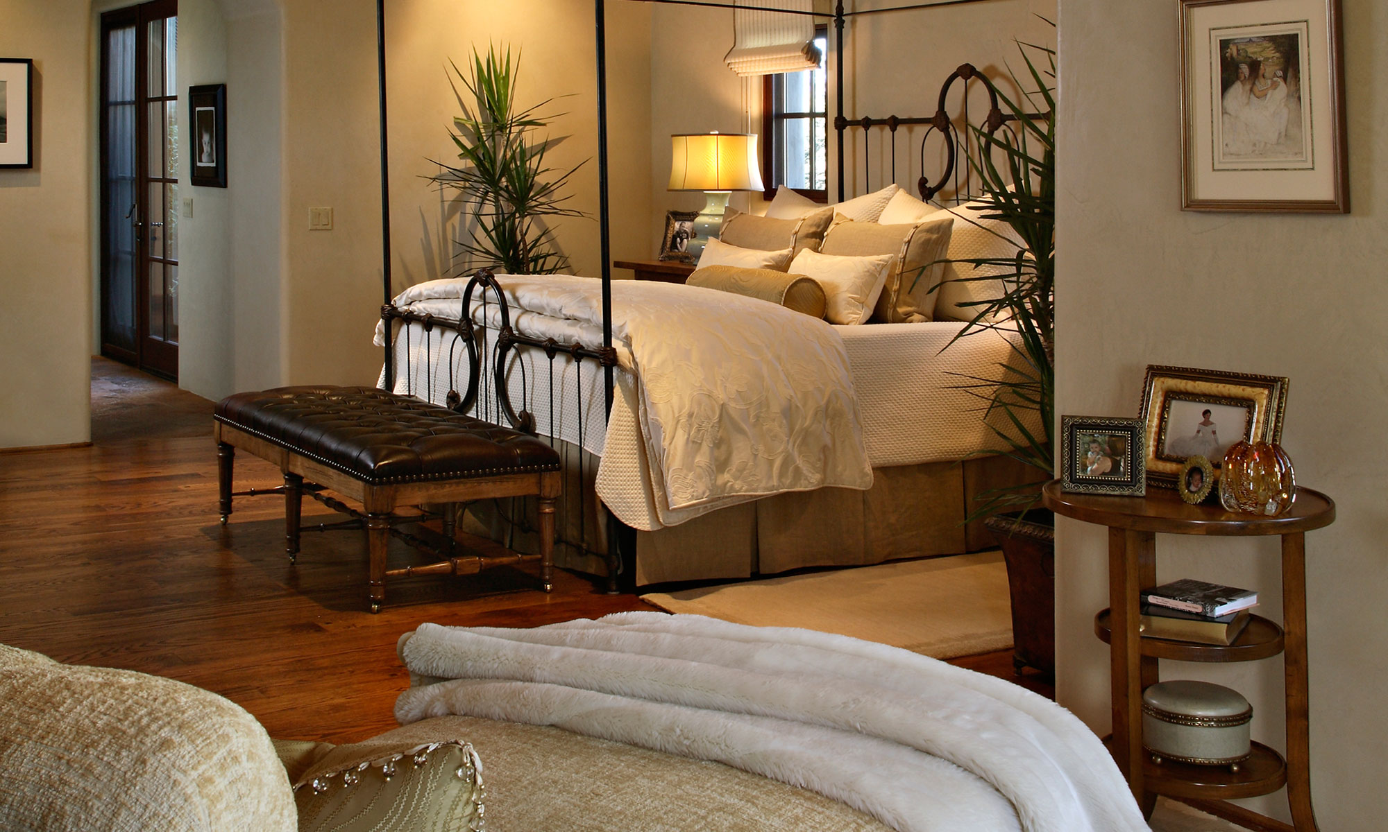 This Santa Fe Inspired Interior Design features carved wood doors from artisans in Santa Fe that highlight the indigenous feeling of this home while diverse designs and materials from the Arizona desert complement this elegant and warm design.